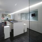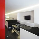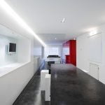 El piso de aproximadamente 100m2, un lugar para vivir sin límites y poder moverse sin barreras. La vivienda se ha planteado como un espacio abierto en blanco y gris donde un cubo cerrado de un rojo intenso revestido por el exterior en un vidrio laminado lacado se convierte en separación entre salón comedor y los dormitorios, en el interior del cubo se esconden dos baños uno para cada habitación. Se instalaron una serie de puertas correderas separando un vestíbulo, un despacho, una cocina, un salón y un dormitorio.
