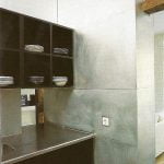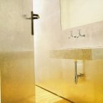 Otro toque significativo se hizo en la puerta del baño al instalarla de acero dando un toque urbano mezclado con los tonos cremas que utilizamos en el baño y el bonito lavabo de piedra igualando la estiva de las paredes, con grifos empotrados en acero cromado.